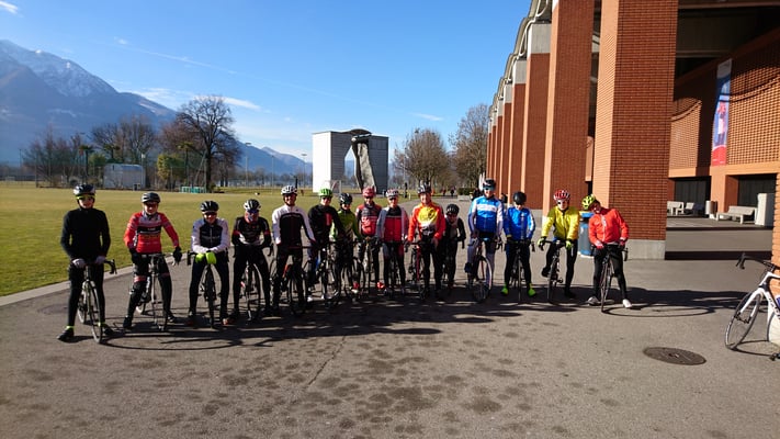 Trainingslager Swiss Cycling Kanton Bern mit 31 Teilnehmenden, was Rekord ist. Einzig das Wetter ist heuer nicht Rekord verdächtig, aber immerhin noch trocken. Schnee am Freitag in Airolo, eine Stunde später Sonnenschein am Lago Maggiore. Fazit am Sonntag: alles im trockenen.